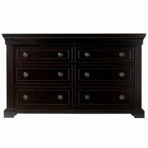 With 8 drawers, this traditional dresser offers plenty of storage space in an attractive espresso finish. jewelry tray full-extension drawer slides cedar veneer in bottom drawer Measures 62.5x22.25x36.78inch H. Poplar/cherry veneer. Imported. Available in colors: Antique Es, Oatmeal. Available from JCPenney.